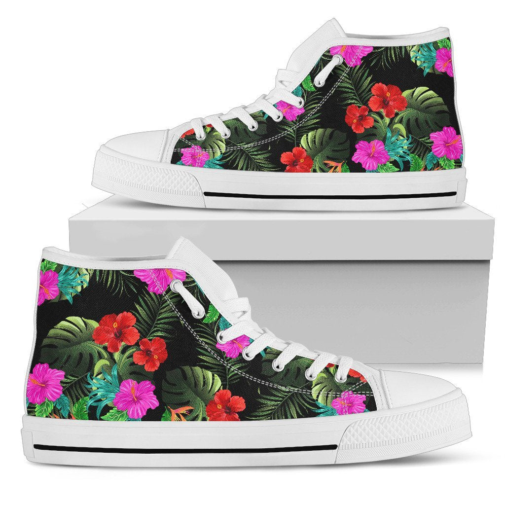 Pink Red Hibiscus Men High Top Canvas Shoes