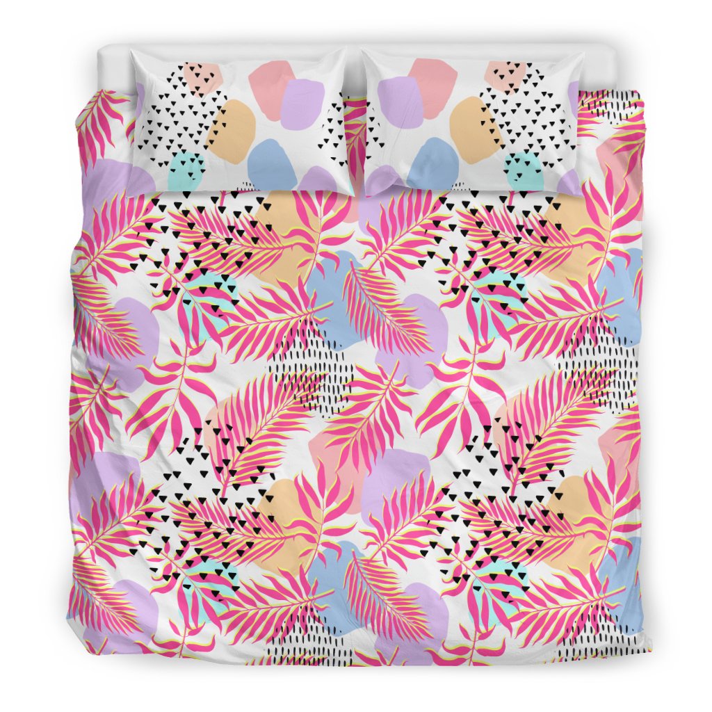 Pink Tropical Palm Leaves Bedding Set