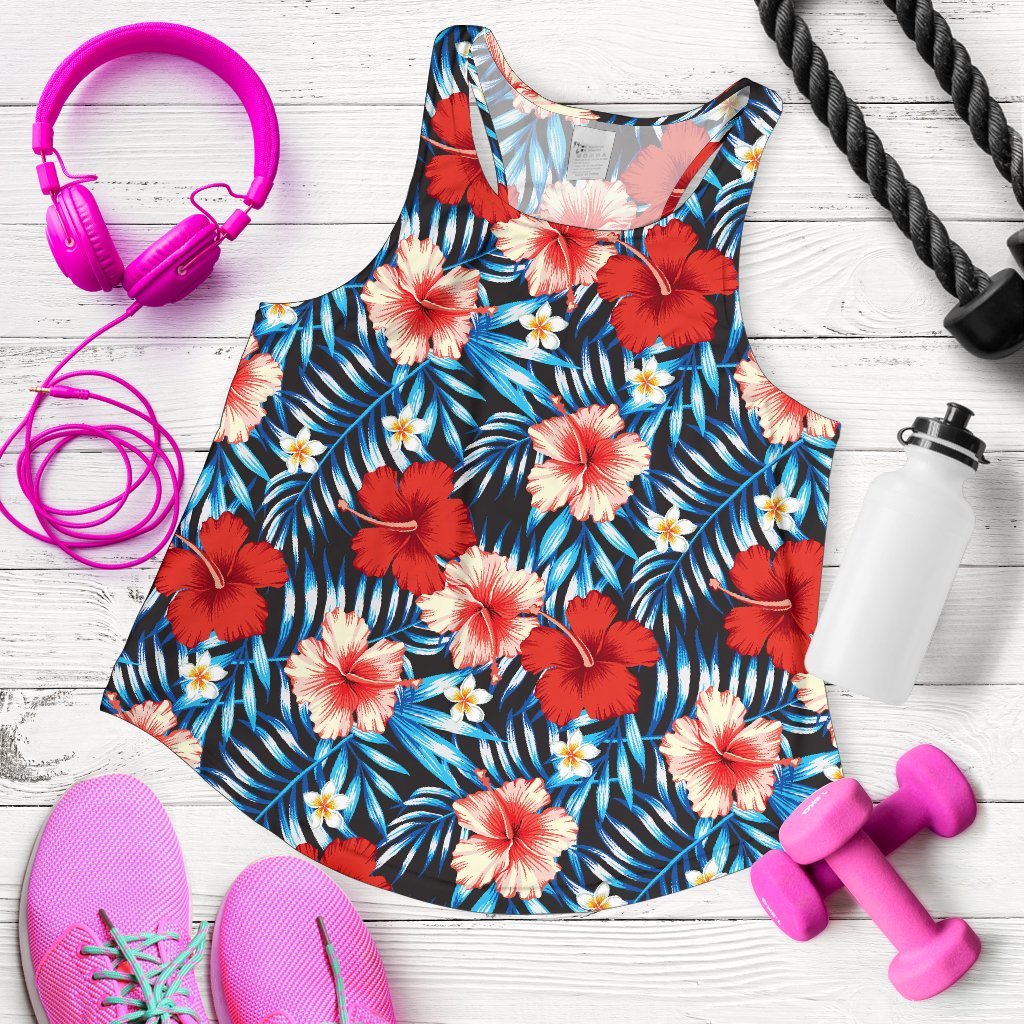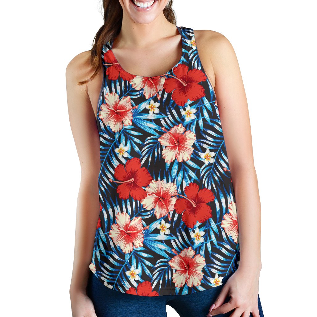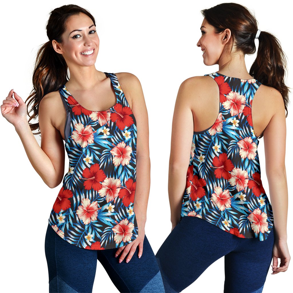 Red Hibiscus Blue Scene Women Racerback Tank Top
