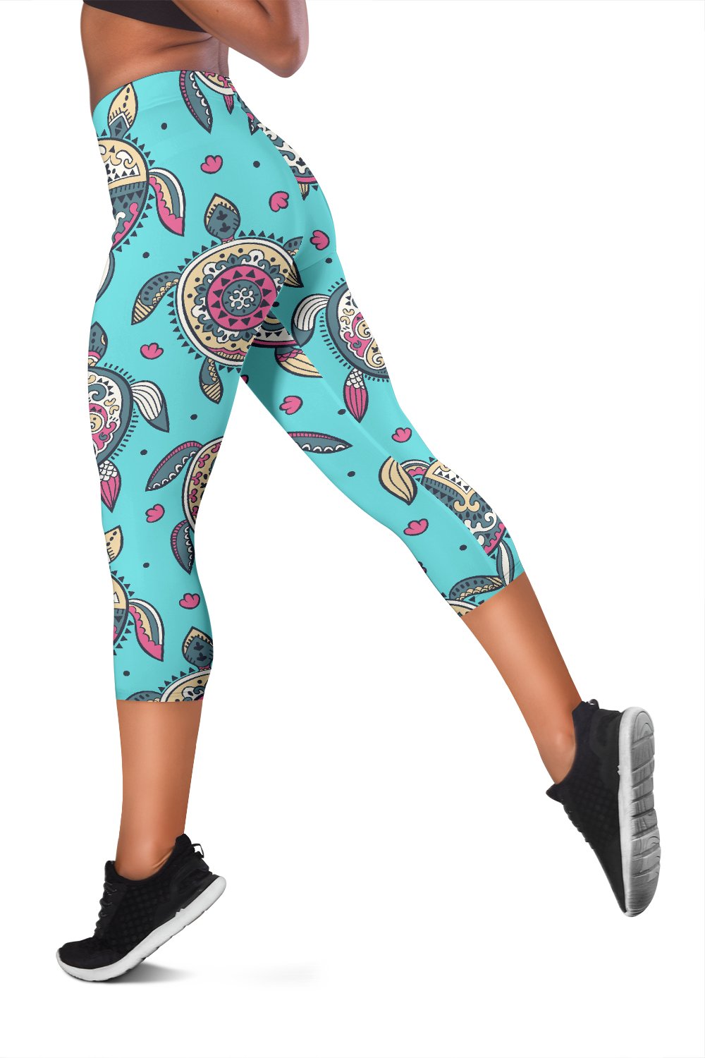 Sea Turtle Art Pattern Women Capris, This is a Unique Design and Made to Order Item. Hand printed, pressed and sewn with love in our factory just for your order!