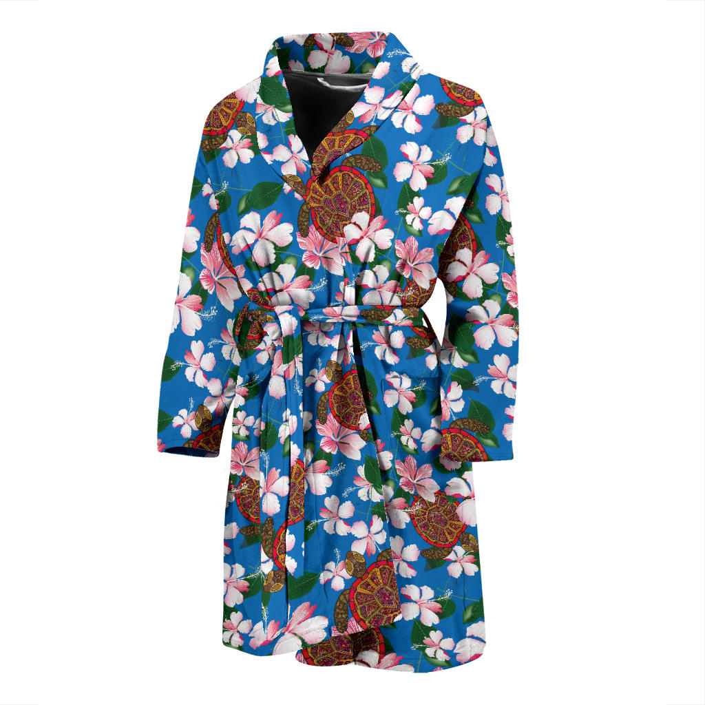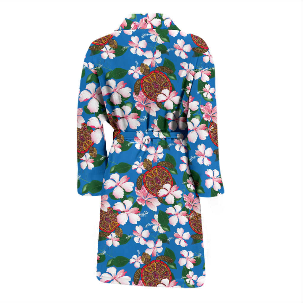 Sea Turtle Pink Hibiscus Hawaiian Print Men Bathrobe