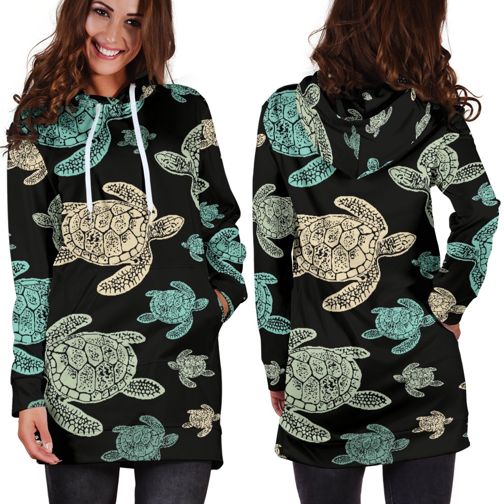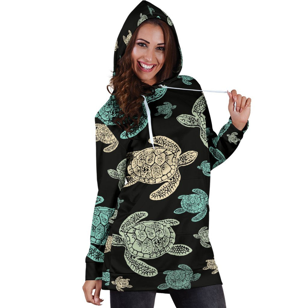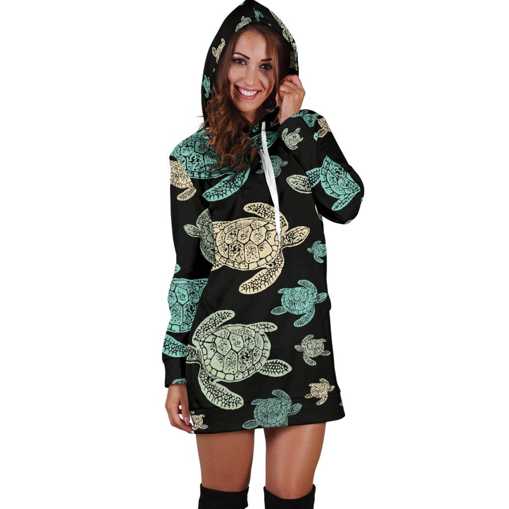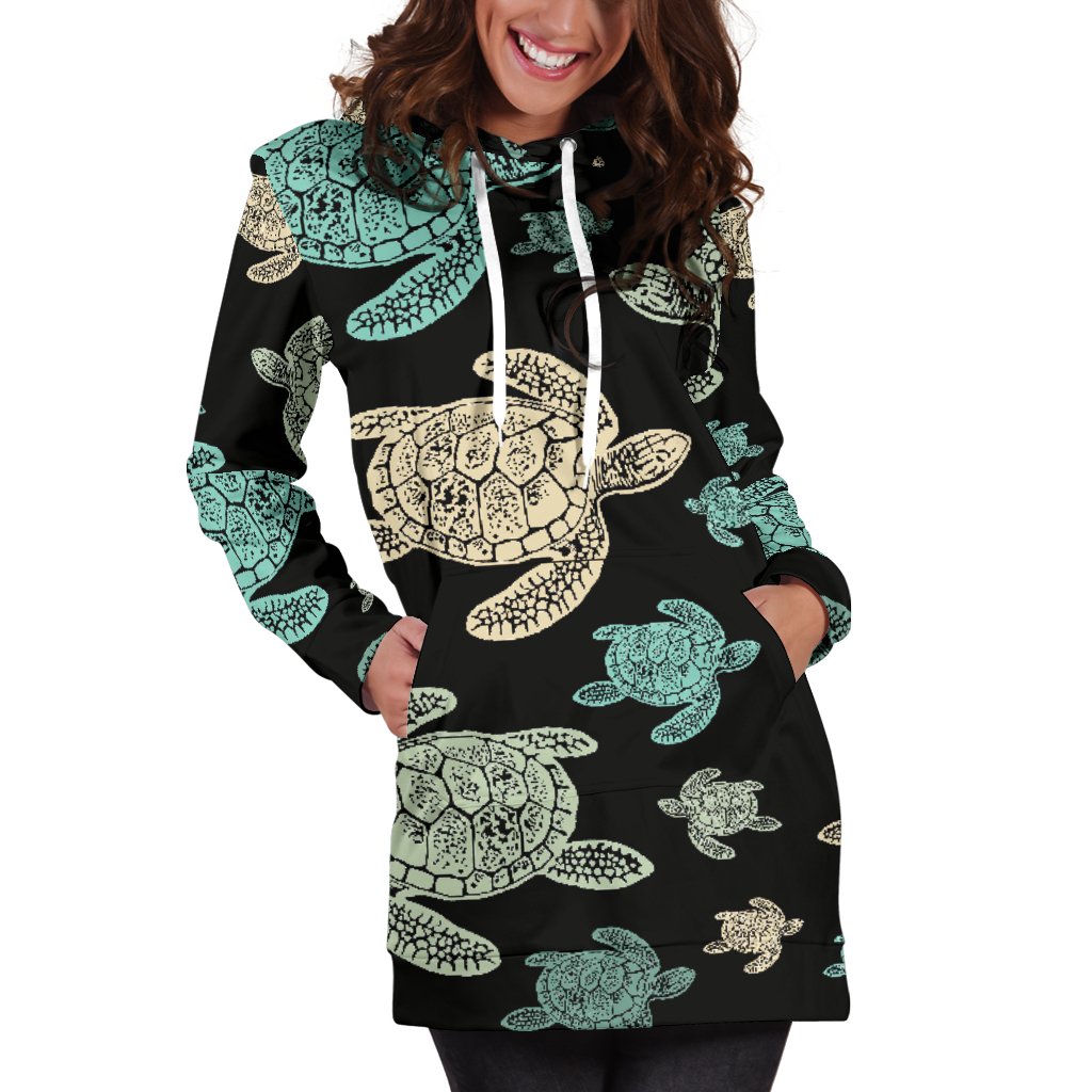Sea Turtle Stamp Pattern Women Hoodie Dress