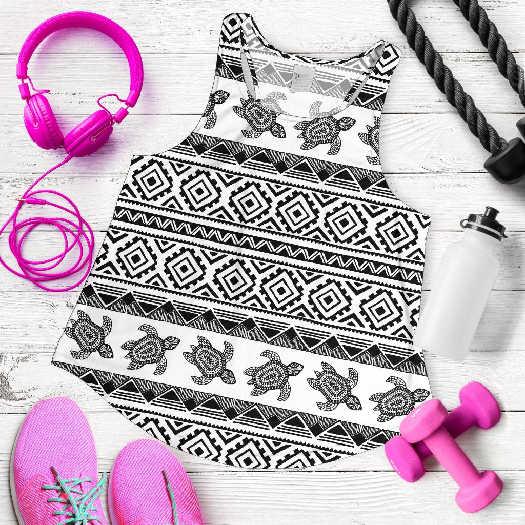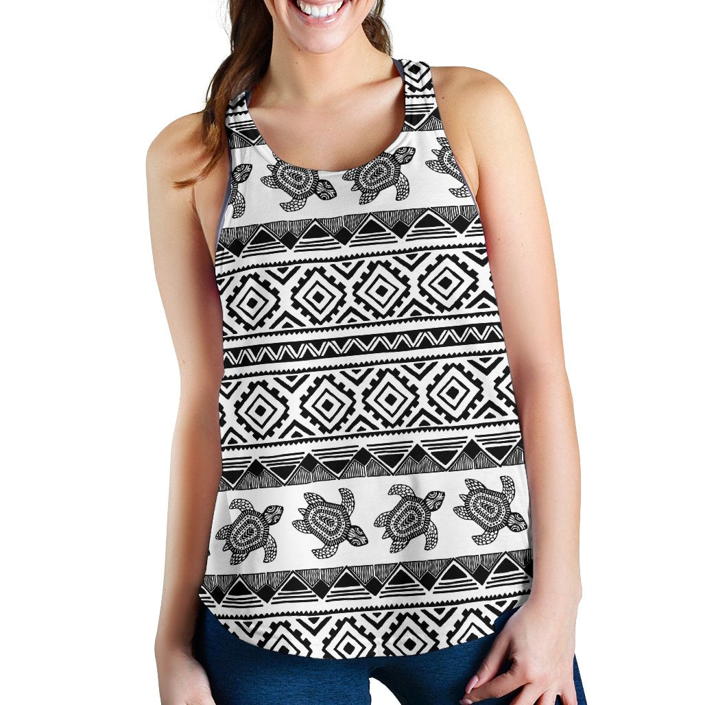 Sea Turtle Tribal Aztec Women Racerback Tank Top