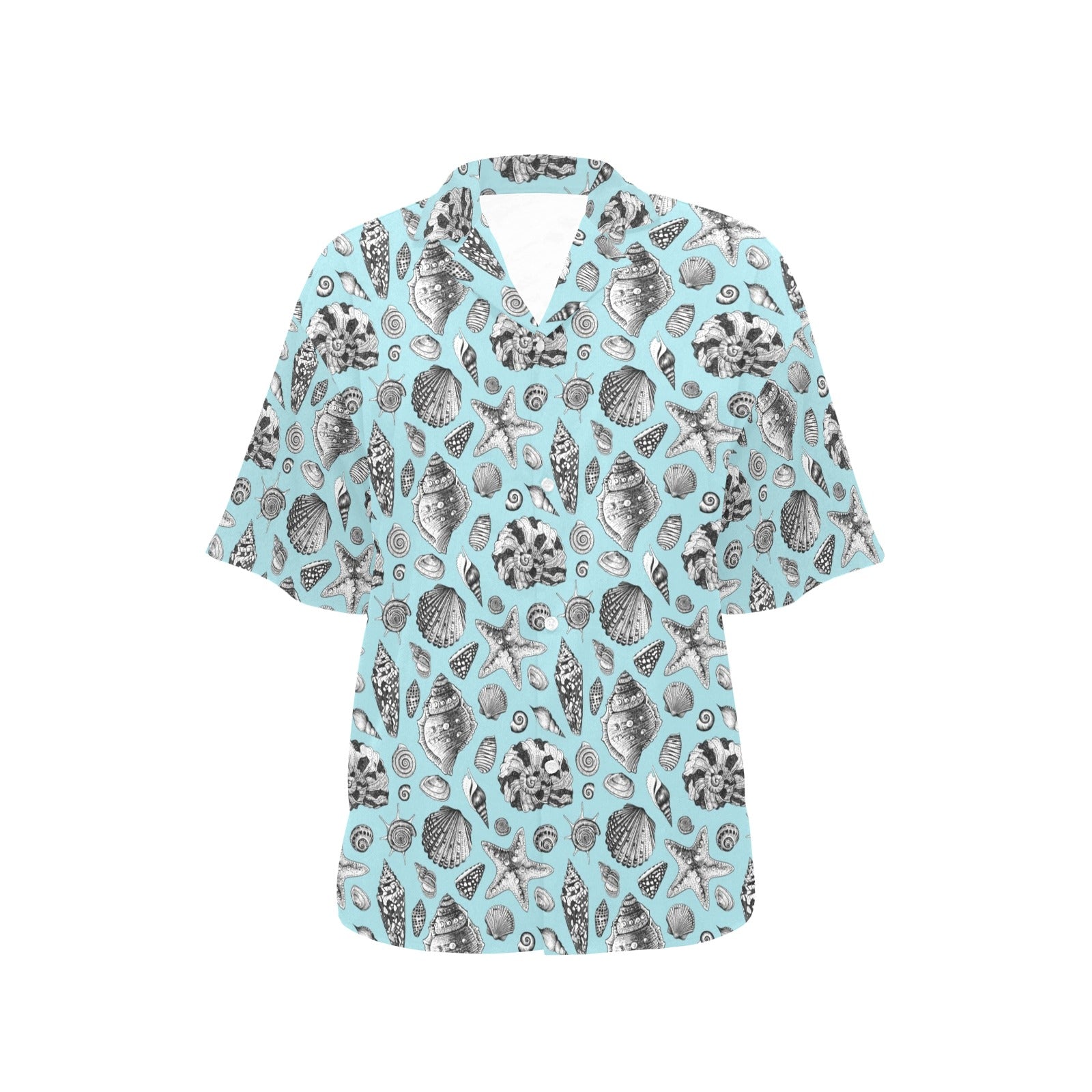 Seashell Beach Print Design LKS302 Women's Hawaiian Shirt