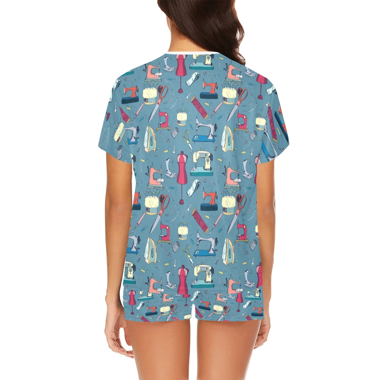 Sewing Equipment Print Design LKS301 Women's Short Pajama Set