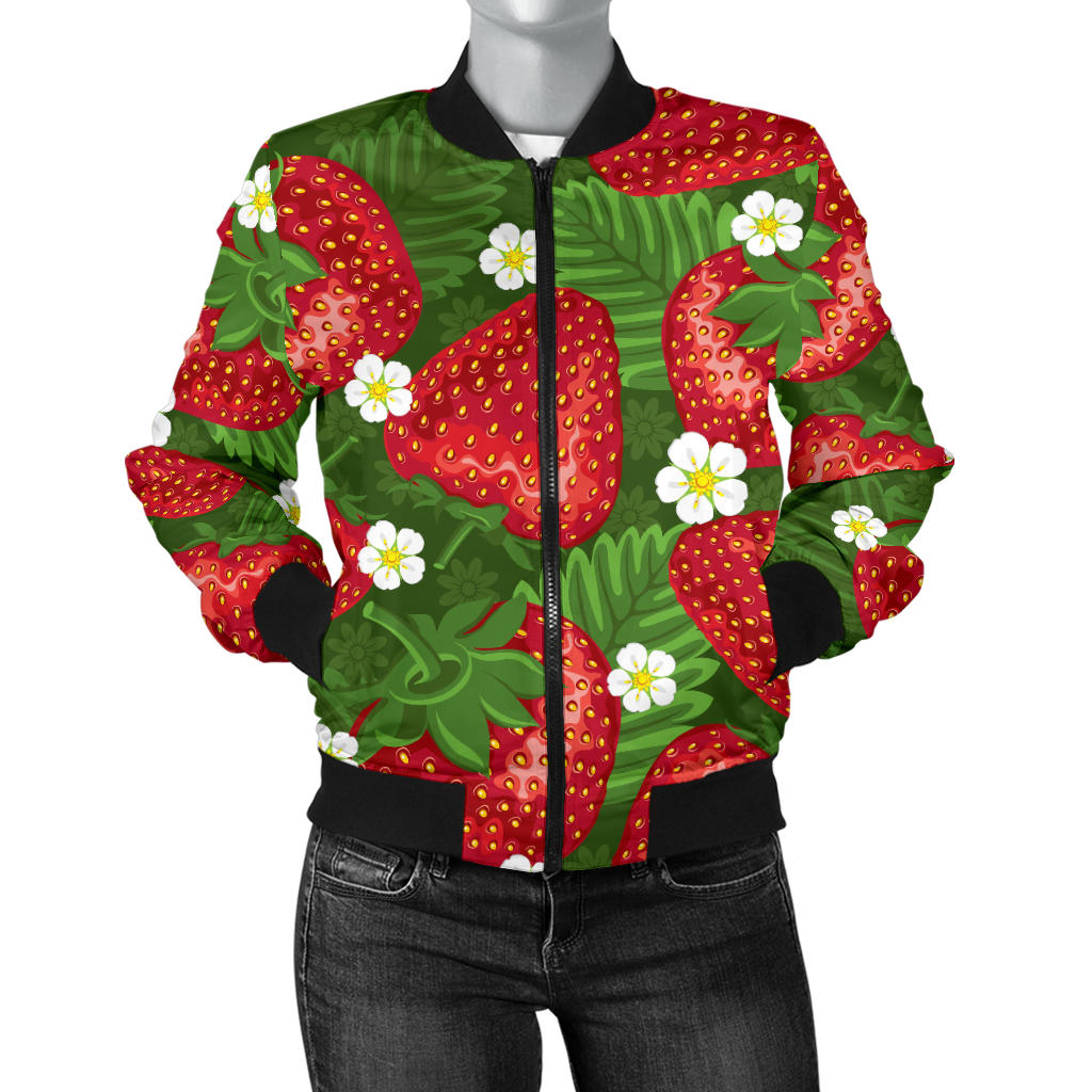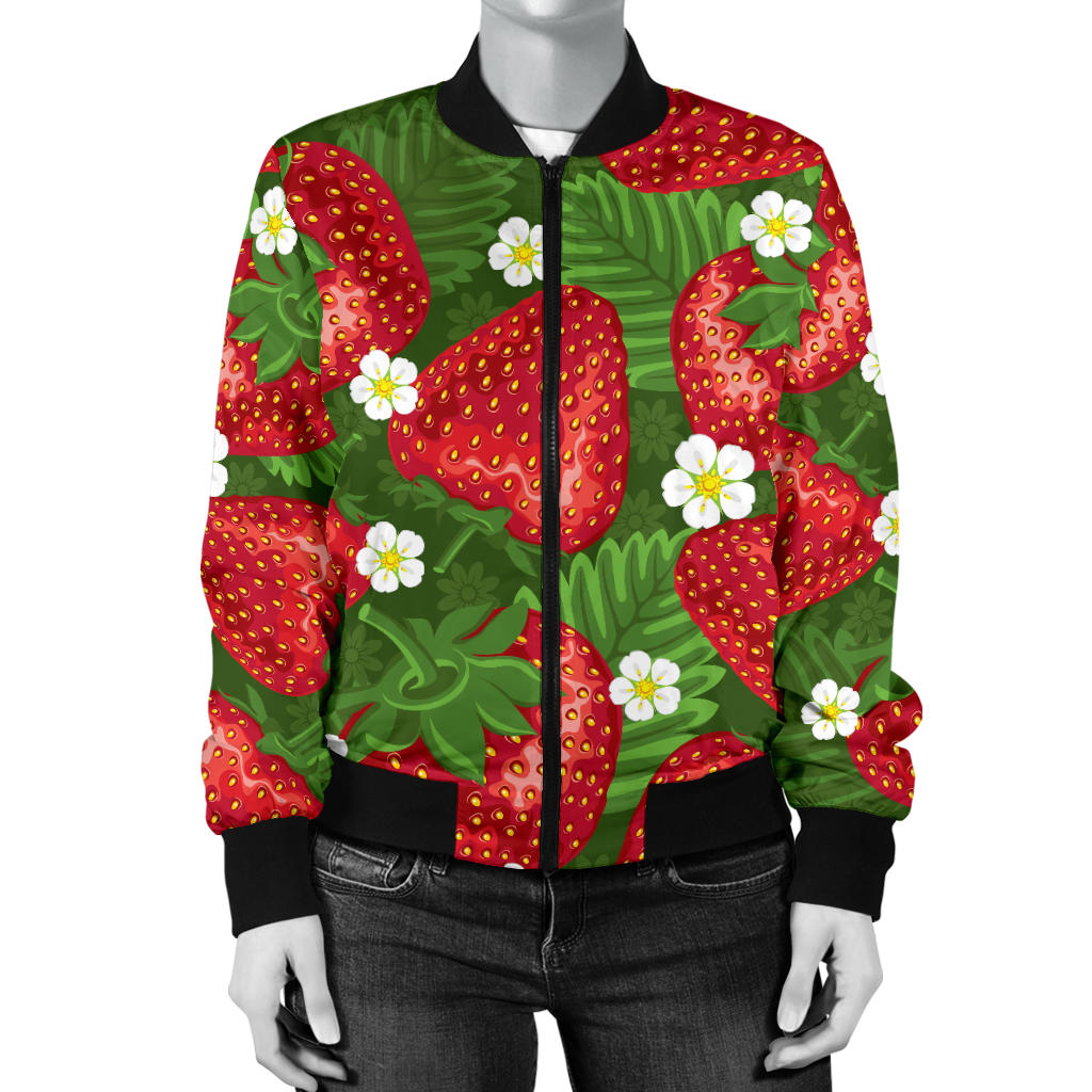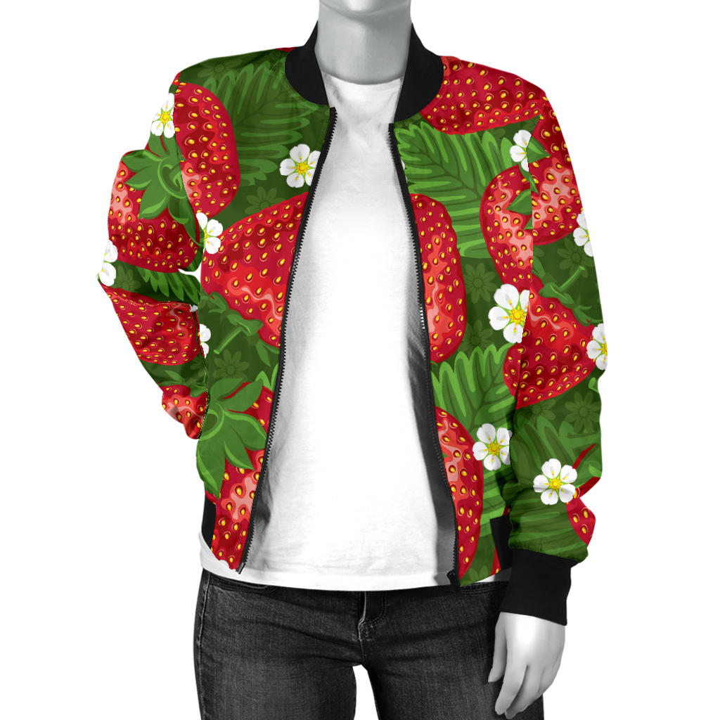 Strawberry Pattern Print Design SB05 Women Bomber Jacket