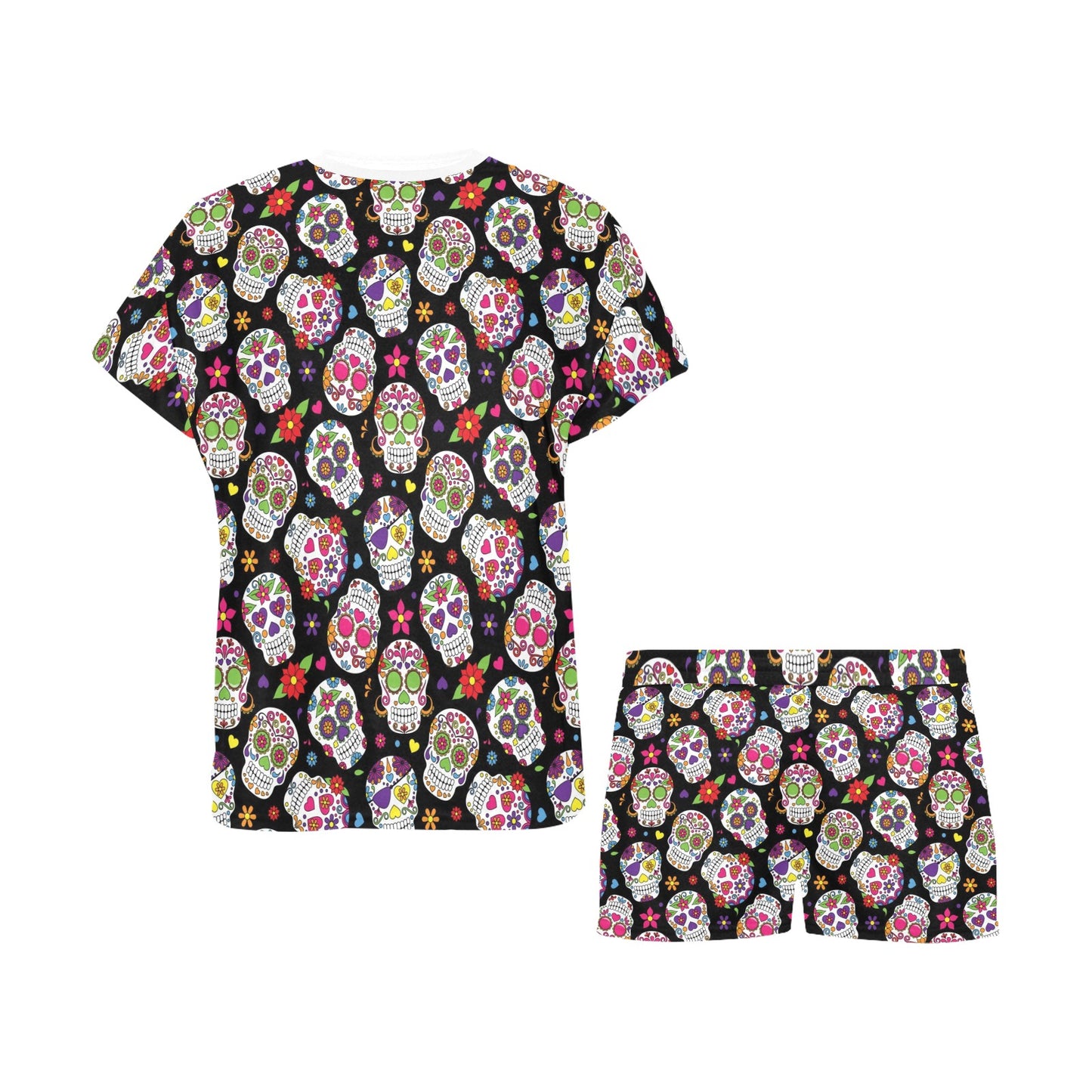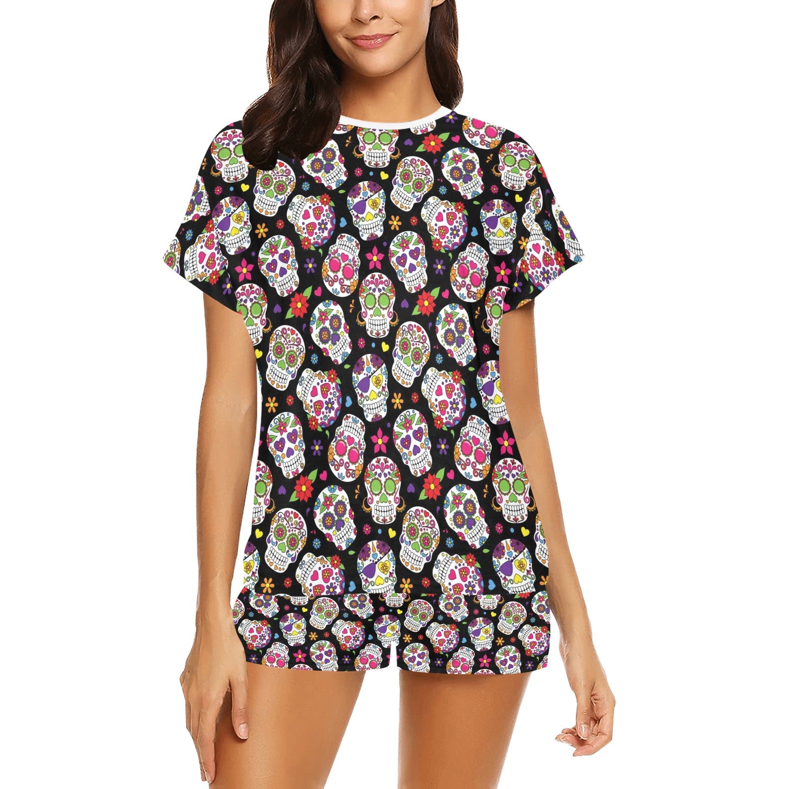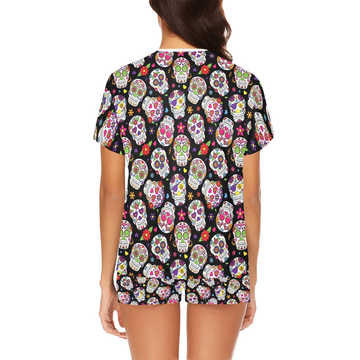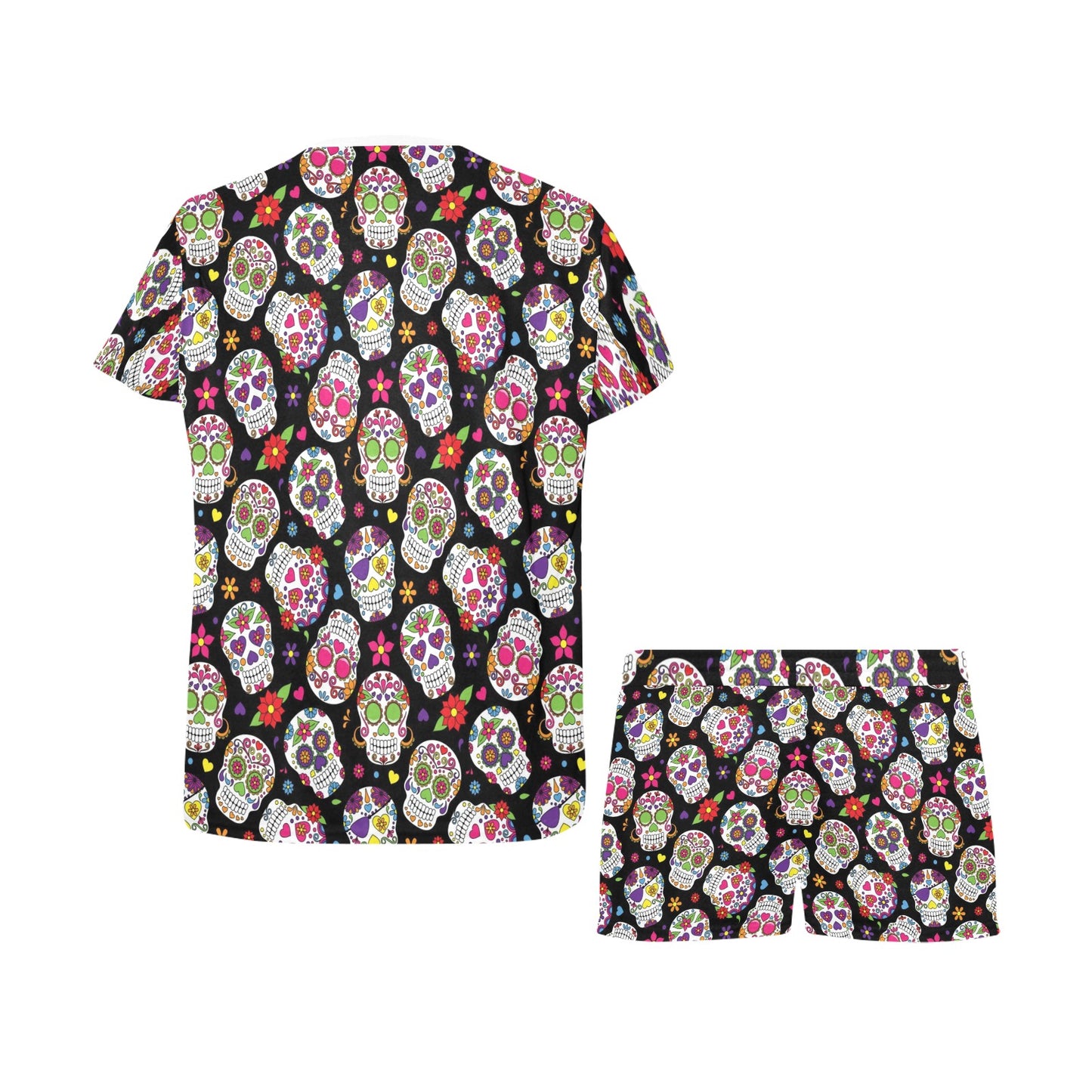 Sugar Skull Print Design LKS302 Women's Short Pajama Set