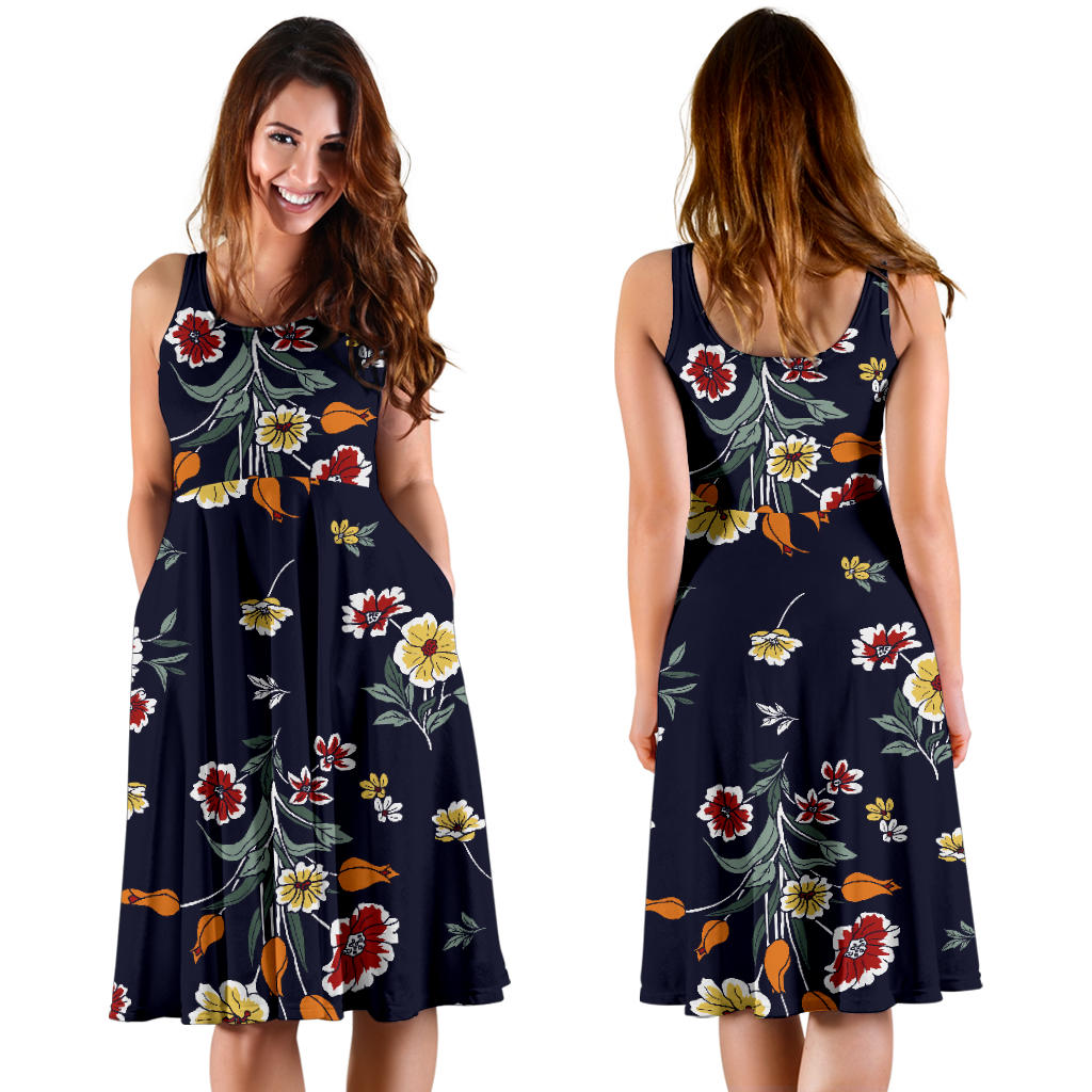 Summer Floral Pattern Print Design SF01 Midi Dress