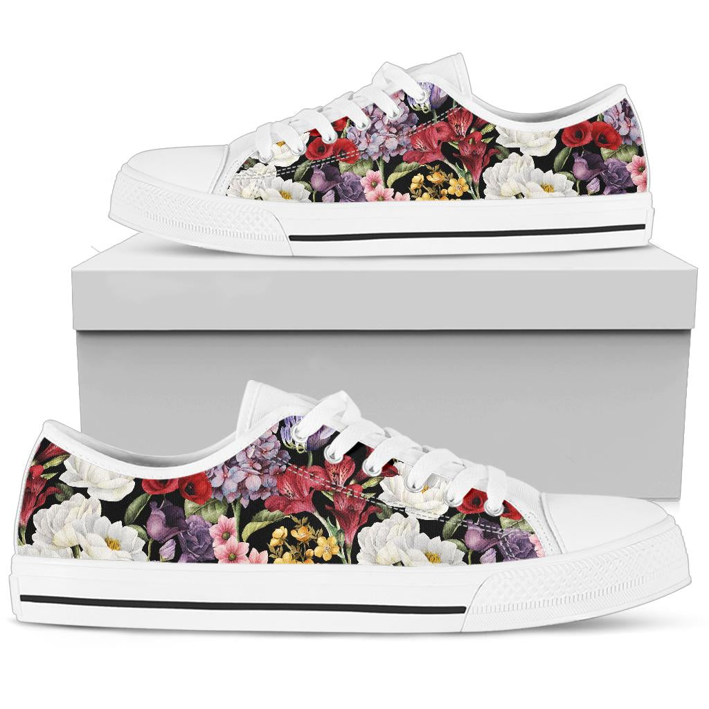 Summer Floral Pattern Print Design SF04 White Bottom Low Top Shoes