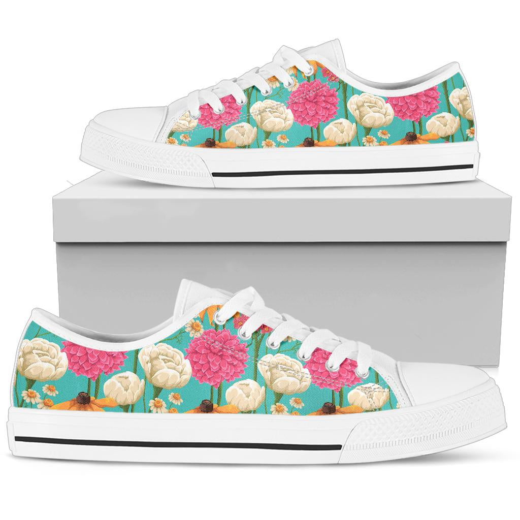 Summer Floral Pattern Print Design SF07 White Bottom Low Top Shoes