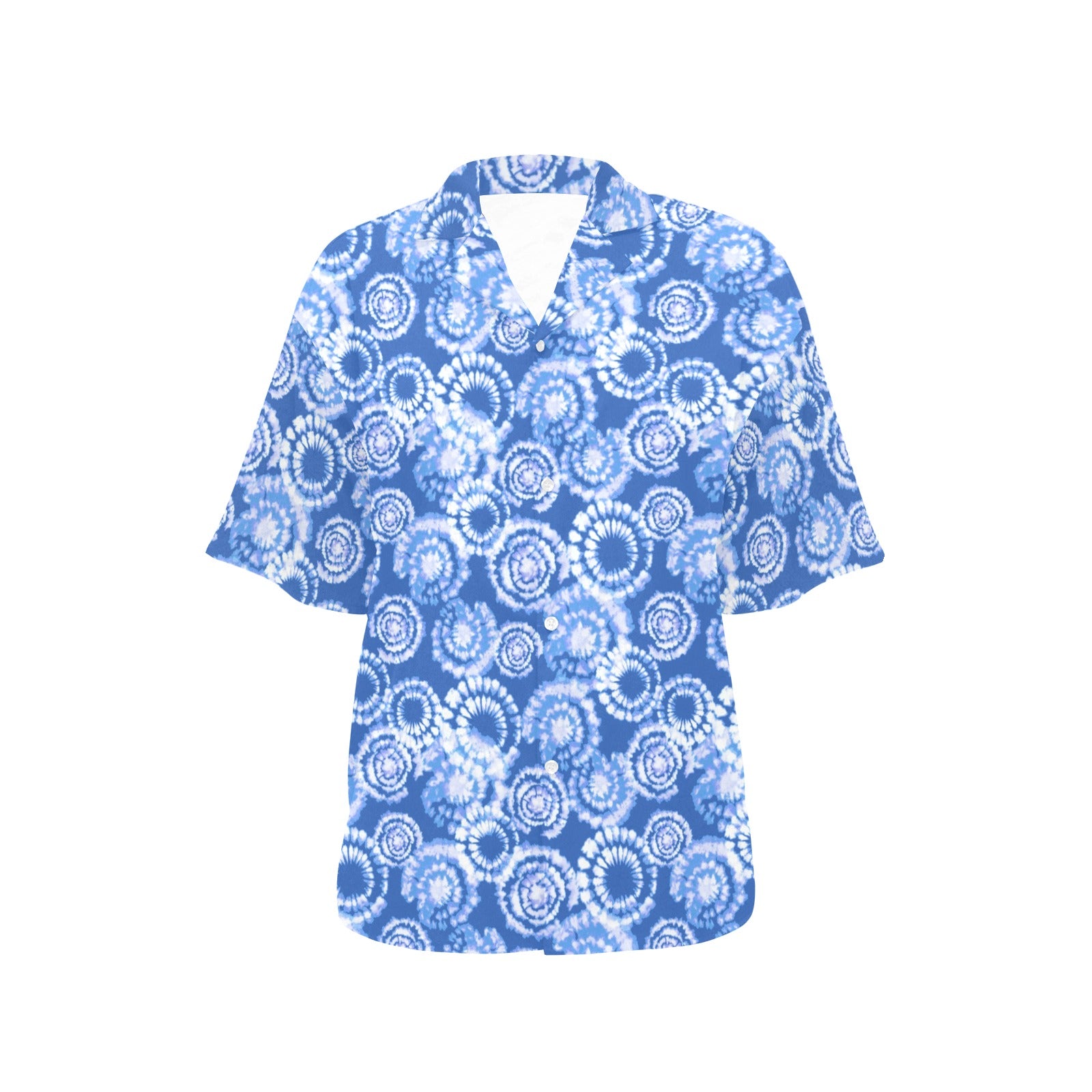Tie Dye Blue Design Print Women's Hawaiian Shirt