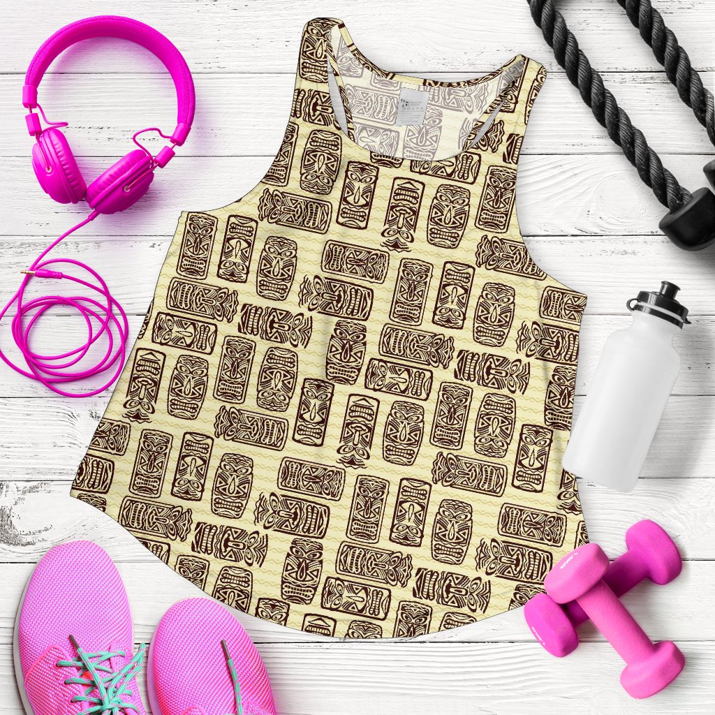 Tiki Brown Symbol Print Women Racerback Tank Top