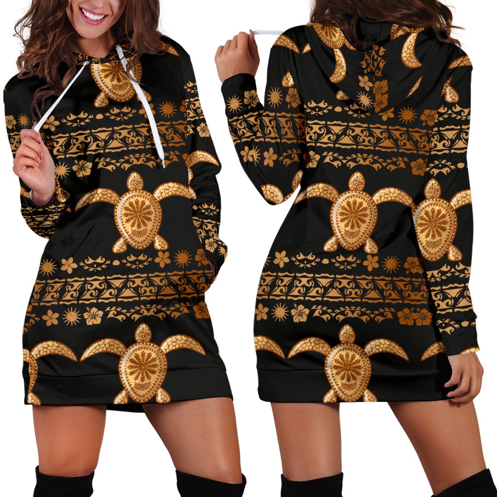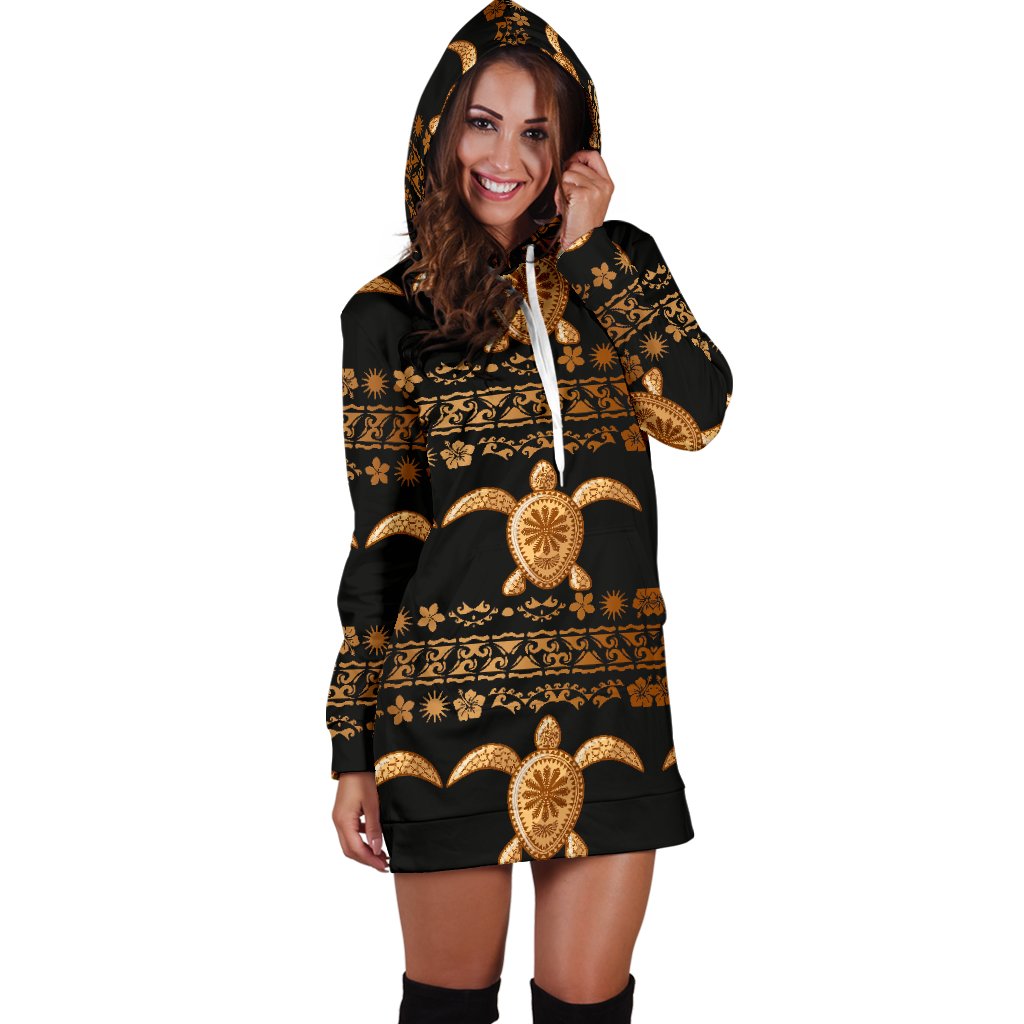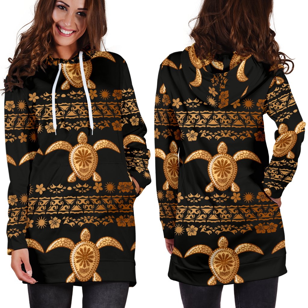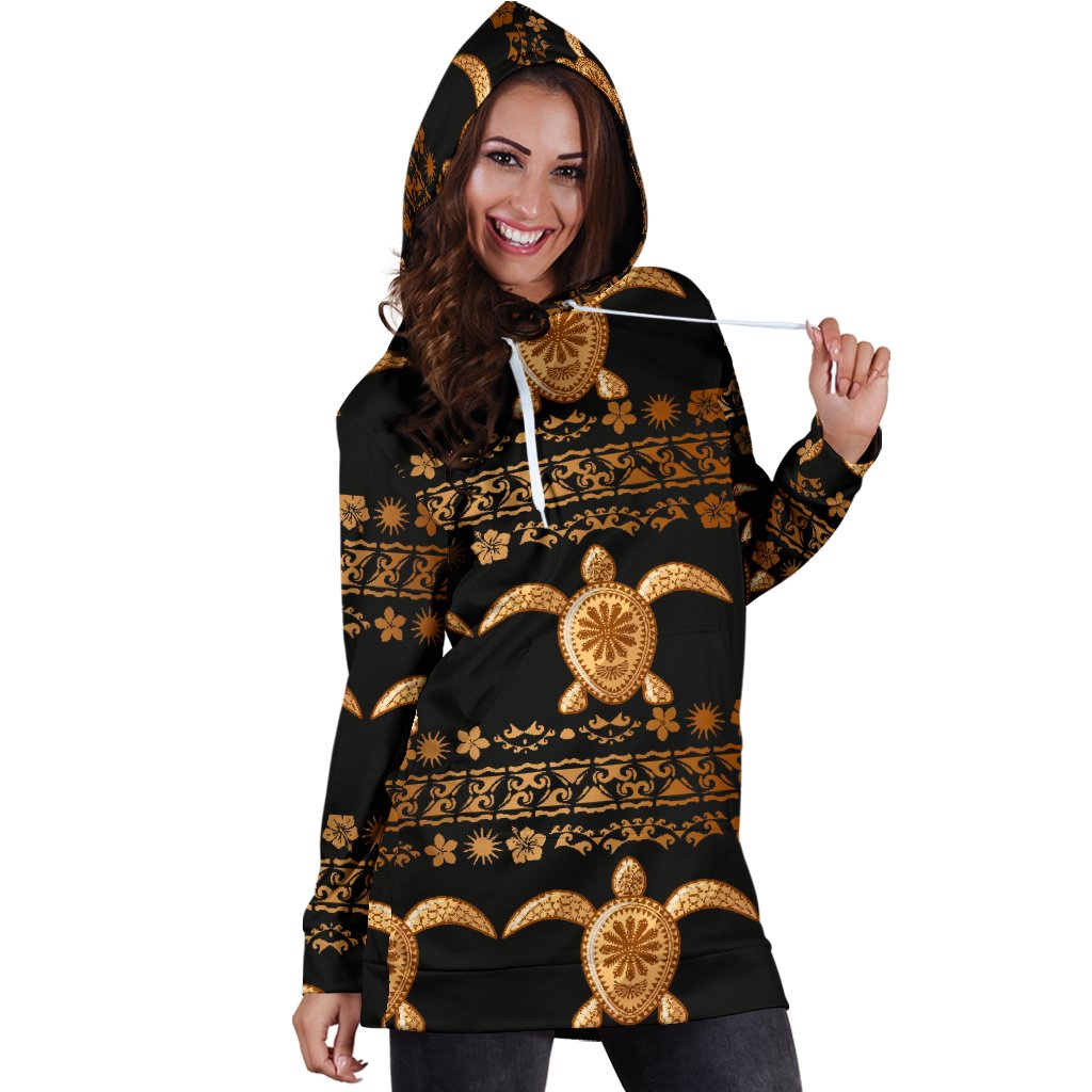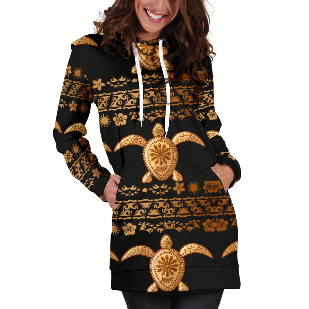 Tribal Sea Turtle Polynesian Hawaiian Women Hoodie Dress