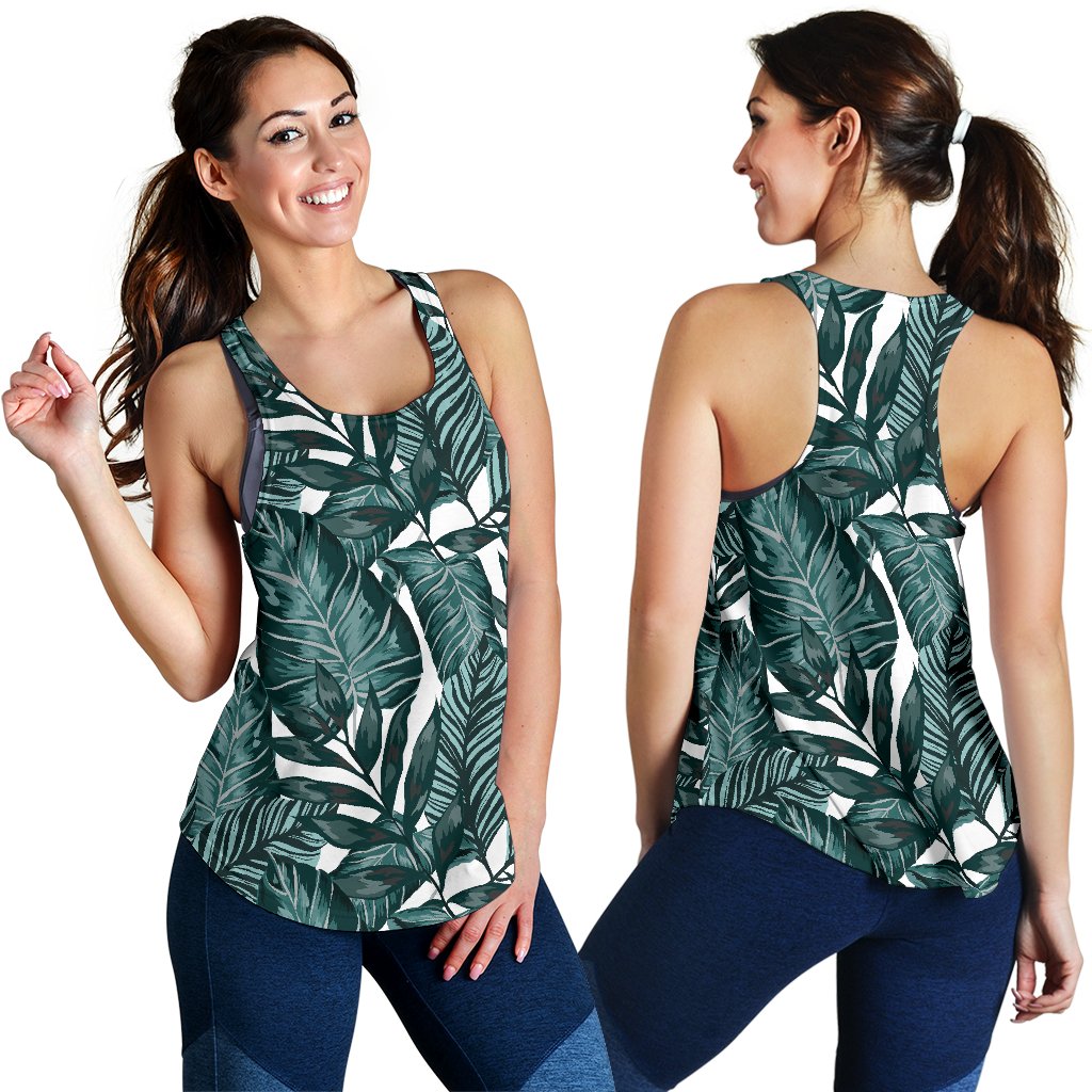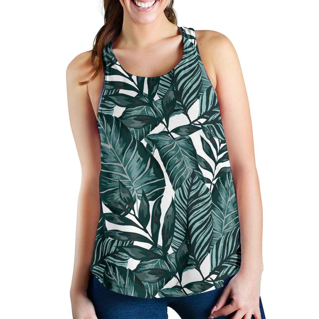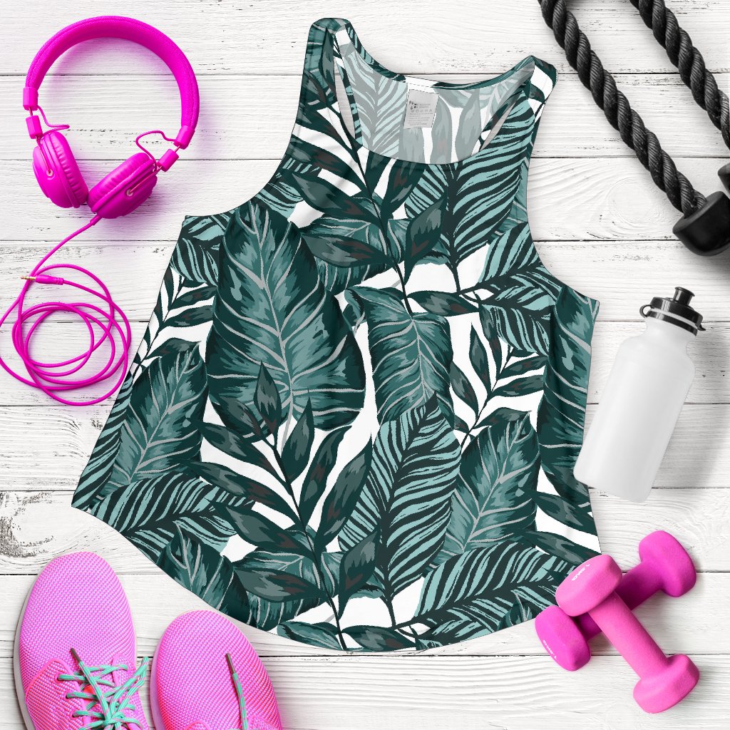 Tropical Palm Leaves Pattern Women Racerback Tank Top