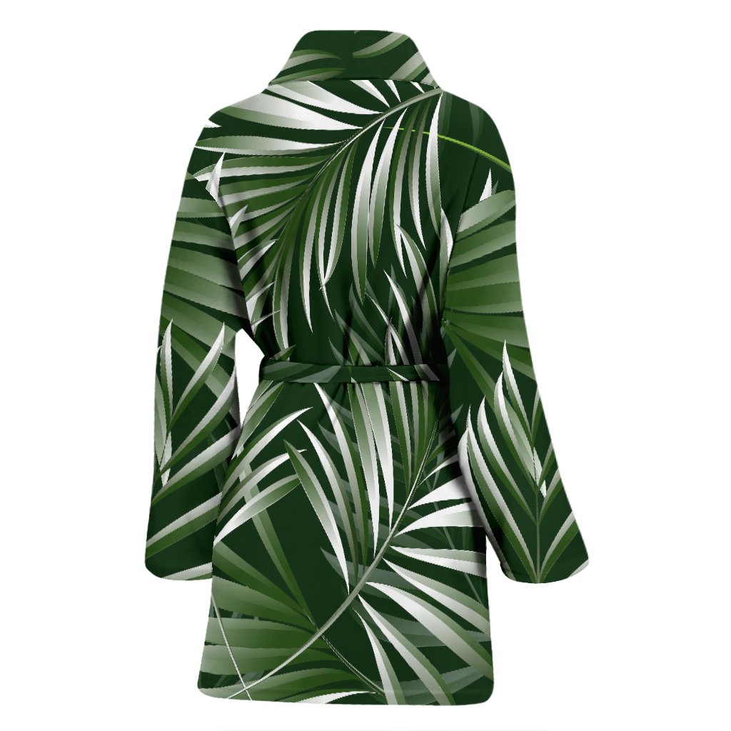 White Green Tropical Palm Leaves Women Bathrobe