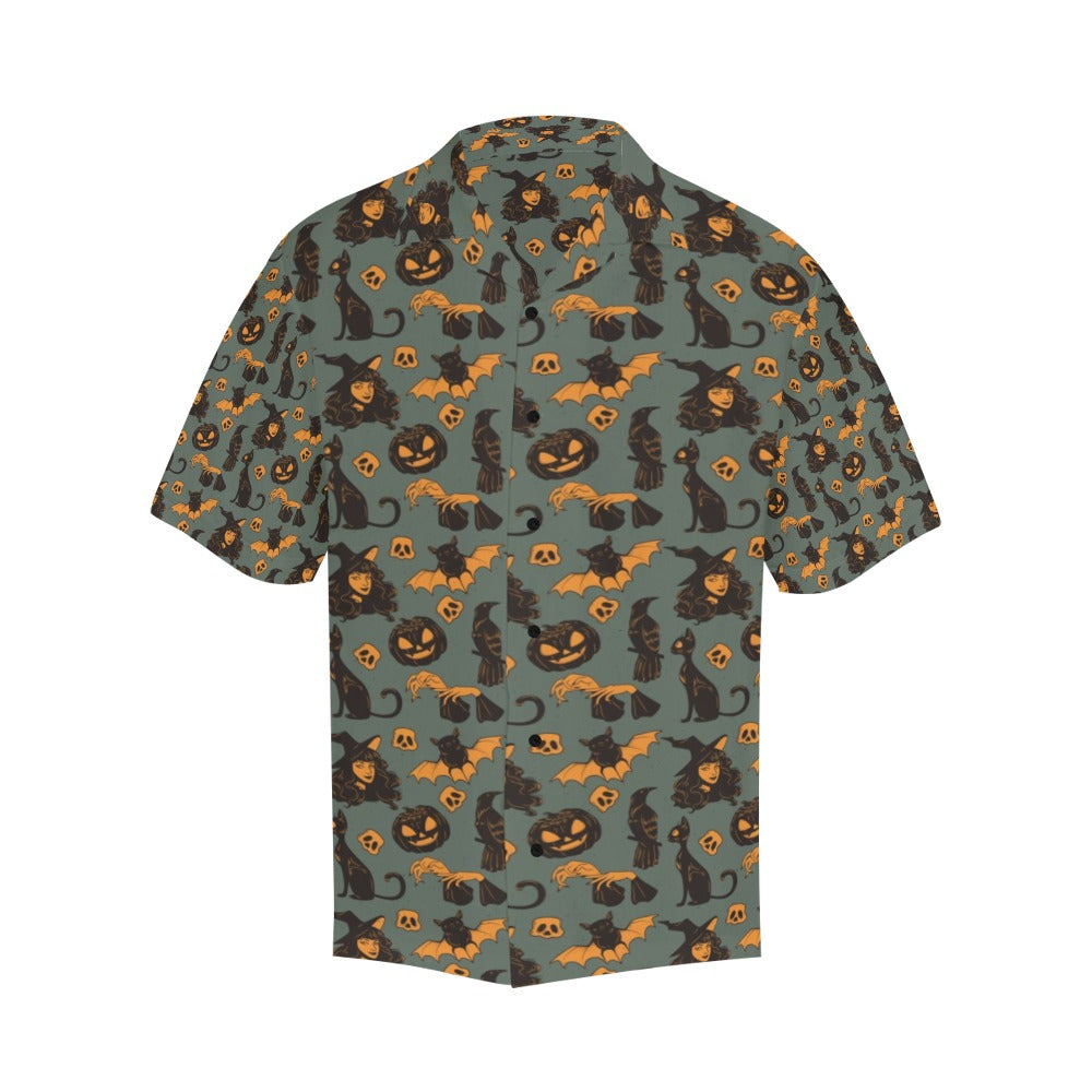 Witch Bat Halloween Print Design LKS305 Men's Hawaiian Shirt Custom handmade Printing and Sewing, Limited Edition Not Available in Store.